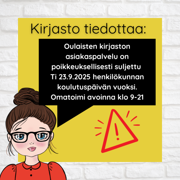 Oulaisten kirjaston asiakaspalvelu on poikkeuksellisesti suljettu tiistaina 23.9.2025