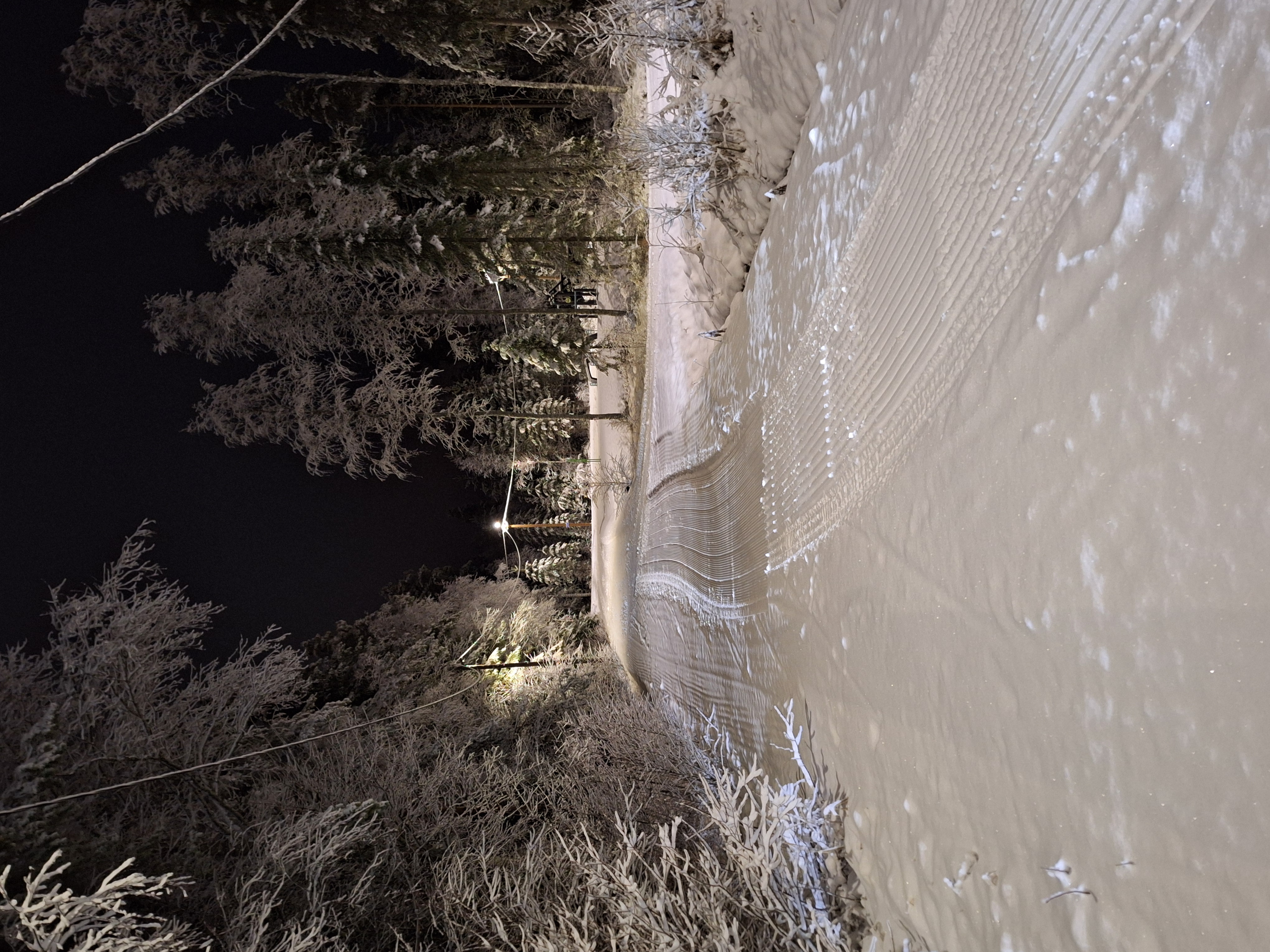 Torstaiaamuna 11.12. latujen kunnostusta on päästy taas jatkamaan, perinteisen uraa ajetaan laduille lumitilanteen sen salliessa.