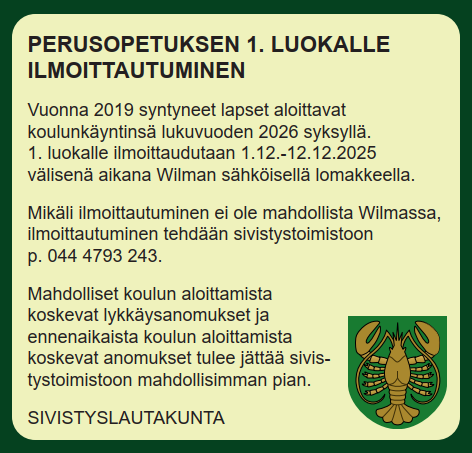 Perusopetuksen 1. luokalle ilmoittautuminen