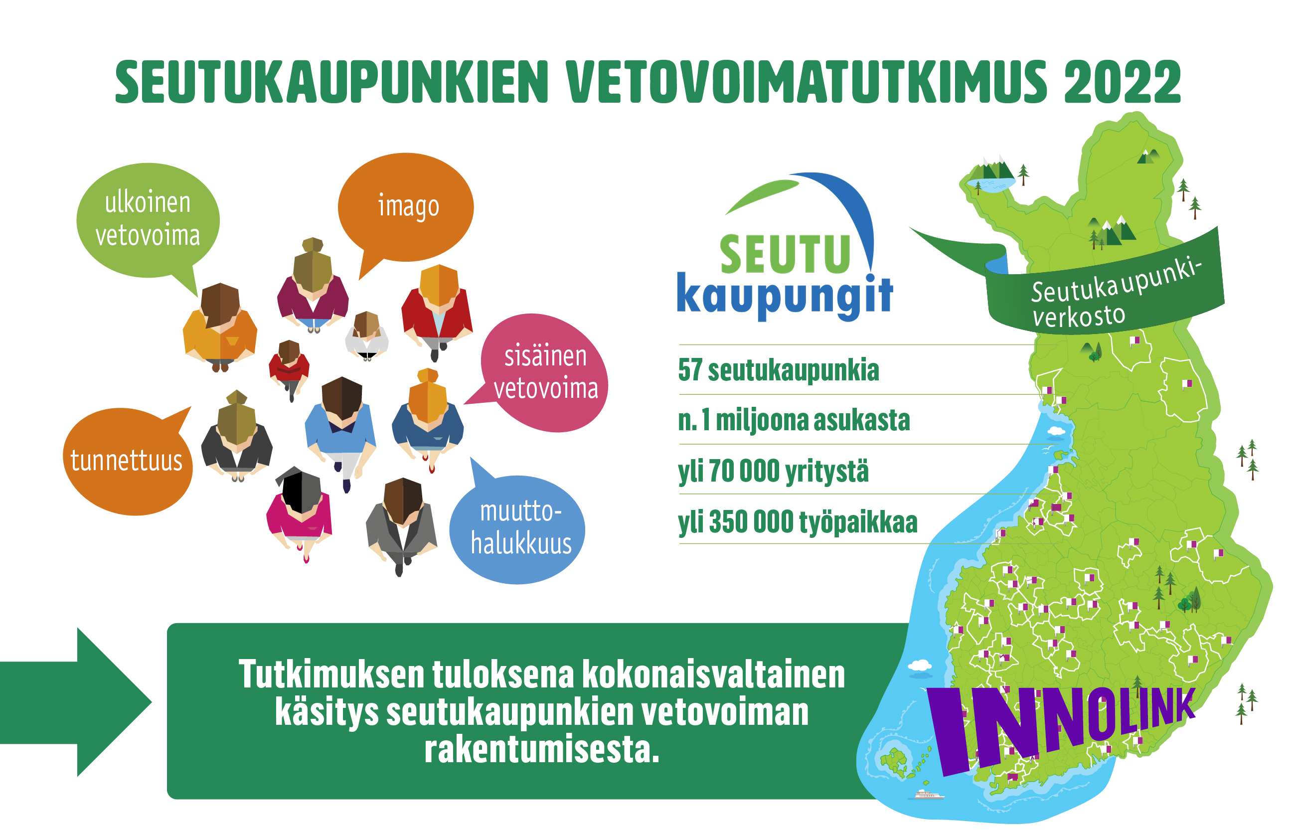 vetovoimatutkimuksen, jonka avulla selvitetään seutukaupunkeihin liittyviä mielikuvia.