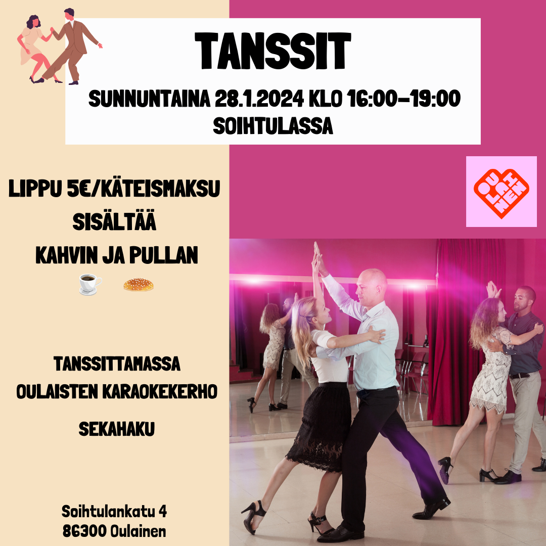 Tanssi Su 28.01.2024 klo 16:00 Päättyy Su 28.01.2024 klo 19:00 Tapahtumapaikka Soihtula Järjestäjä Oulaisten liikuntapalvelut Yhteyshenkilön nimi Seena Arvio Yhteyshenkilön puhelin 0444793215 Tanssit Kaikille avoimet tanssit Soihtulassa 28.1. klo 16-19. Lippu 5€ Soihtulankatu 4, 86300 Oulainen