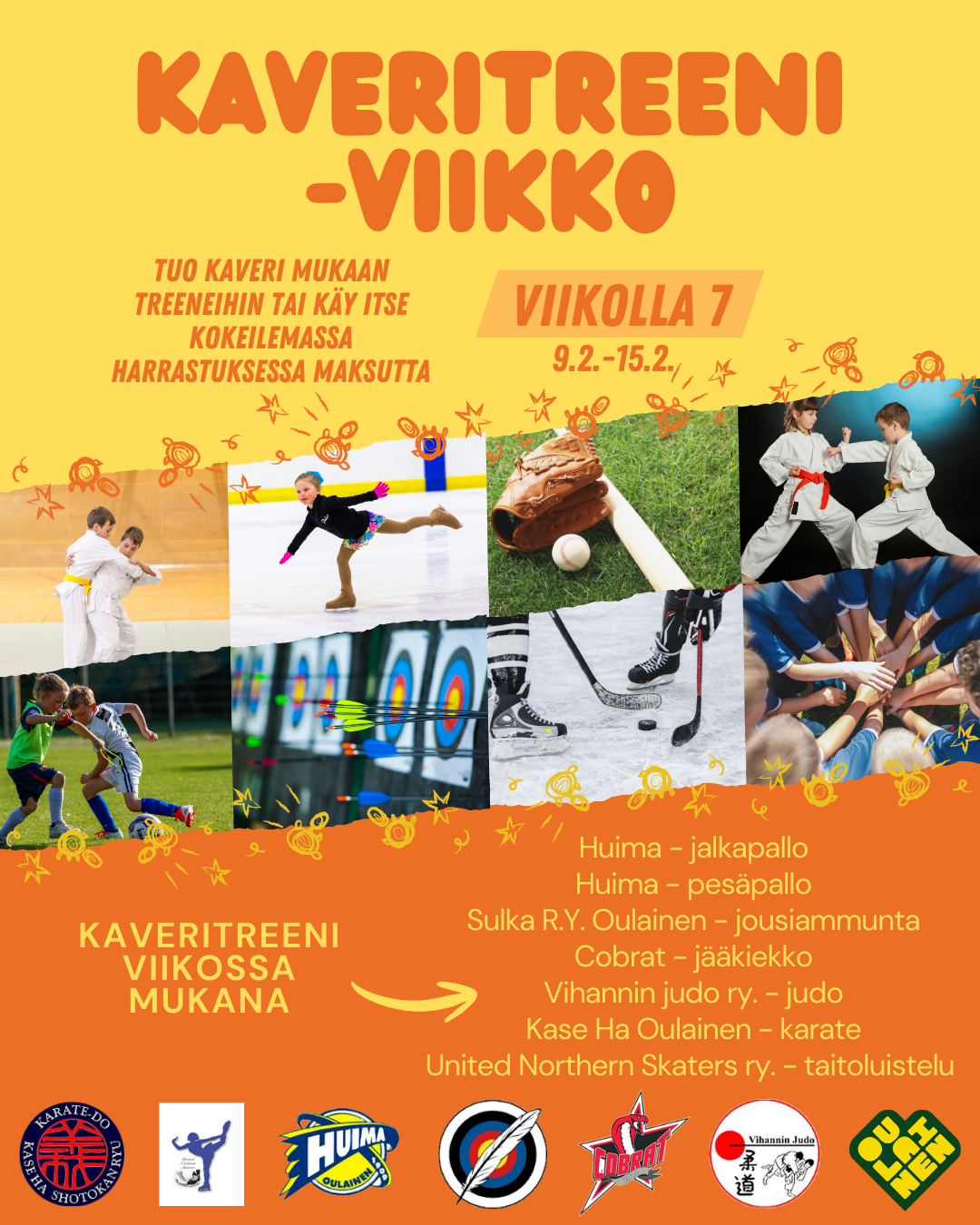 💛 Koko viikon ajan saat tuoda kaverin omiin treeneihin mukaan tai vaihtoehtoisesti käydä itse kokeilemassa uutta harrastusta